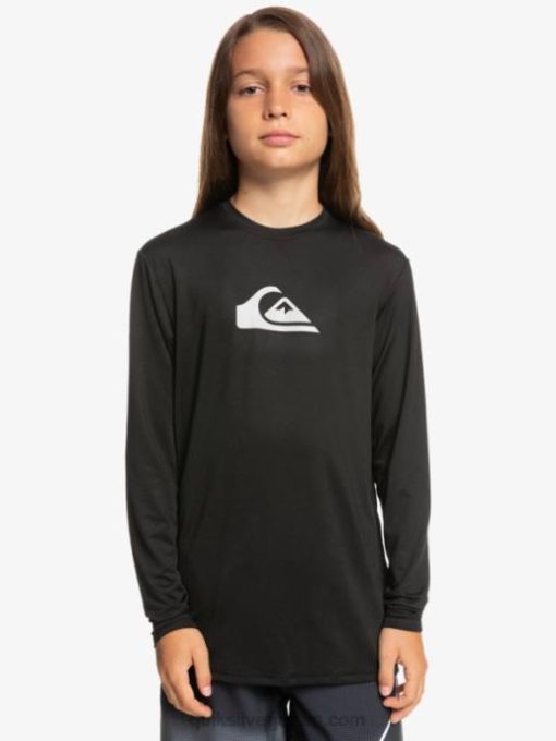 男の子たち Quiksilver 黒 8-16 ソリッド ストリーク LS ユース L/SL サーフ ティー 8P6H2117