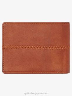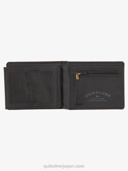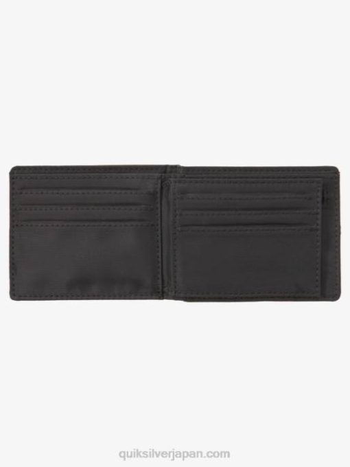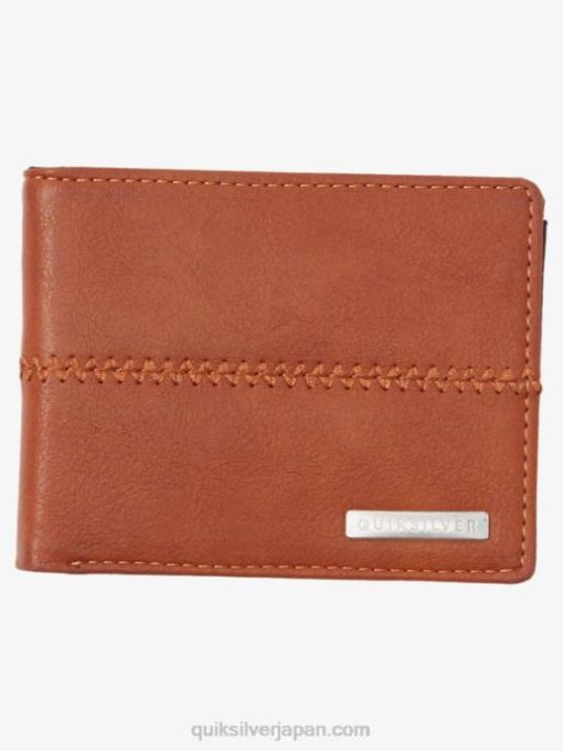 トップステッチは、この必須の三つ折り財布のフェイクレザー構造を詳細に示しています。紙幣、カード、ID を収納できる内側のスロットは、生活を楽にすることを目的としています。クイックシルバーの金属プレートが付いています。