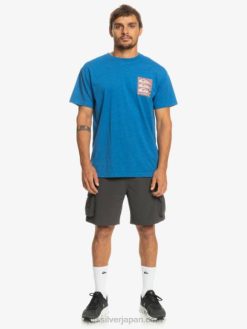 男性 Quiksilver シュノーケルブルー ワープパターン Tシャツ 8P6H1015