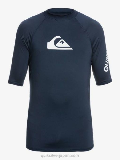 男性 Quiksilver ネイビーブレザー オールタイム 半袖 UPF 50 ラッシュガード 8P6H1263