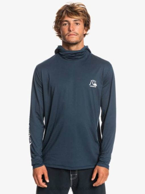 男性 Quiksilver ミッドナイトネイビーヘザー ヘリテージ UPF 50 長袖サーフ T シャツ 8P6H417