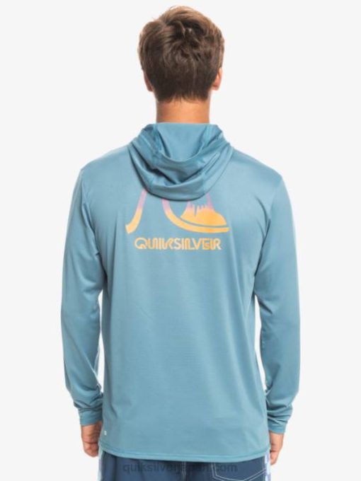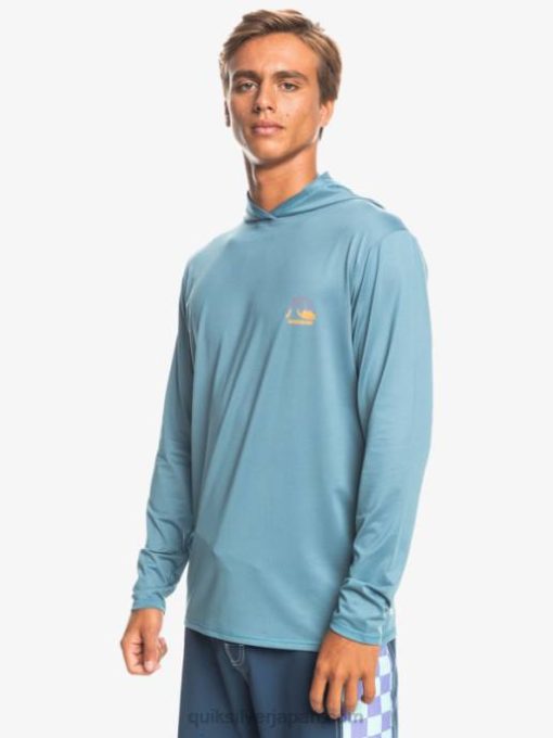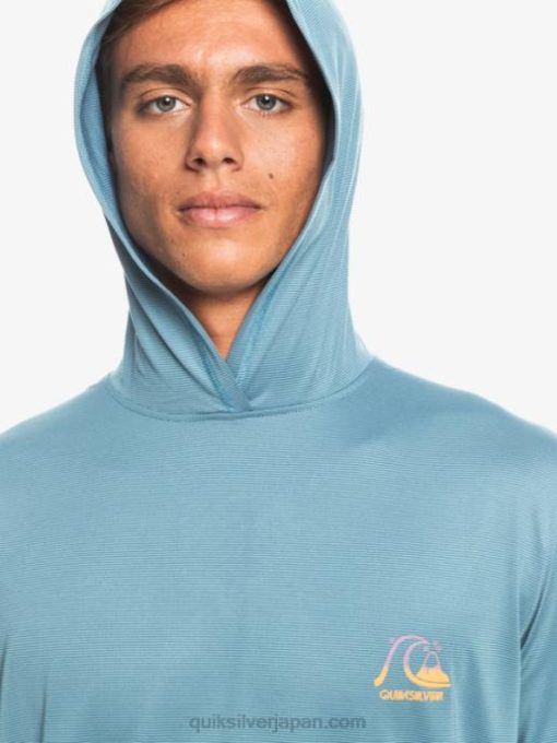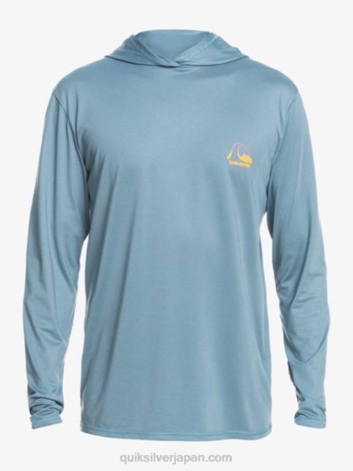 男性 Quiksilver 地方のブルーヘザー ドレッジ フード付き長袖 UPF 50 サーフ T シャツ 8P6H1834