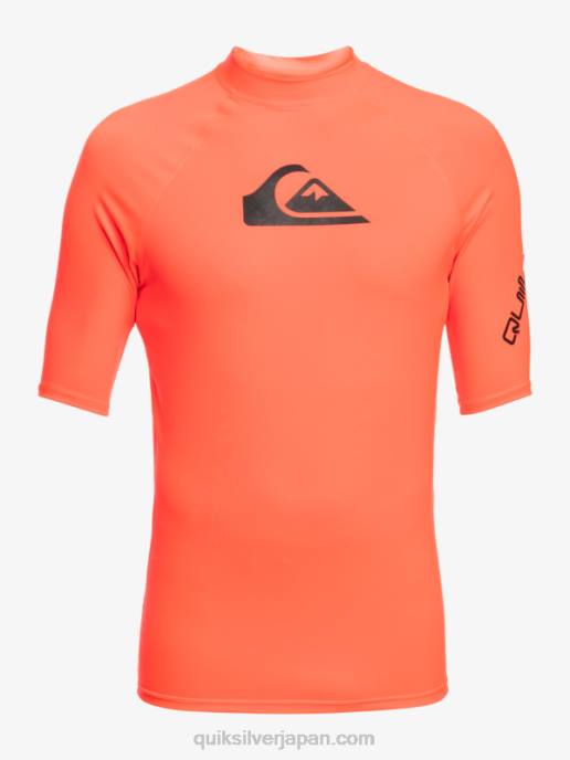 男性 Quiksilver 燃えるようなサンゴ オールタイム 半袖 UPF 50 ラッシュガード 8P6H813