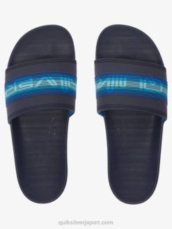 男性 Quiksilver 青5 rivi ワードマーク スライド スライダー サンダル 8P6H684