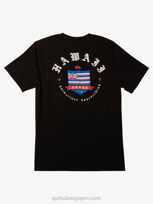 男性 Quiksilver 黒 ハワイ王室のTシャツ 8P6H998